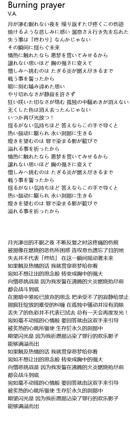 | [02:57.07] | 憎しみへ挑むのは たぎる炎が燃え尽きるまで |