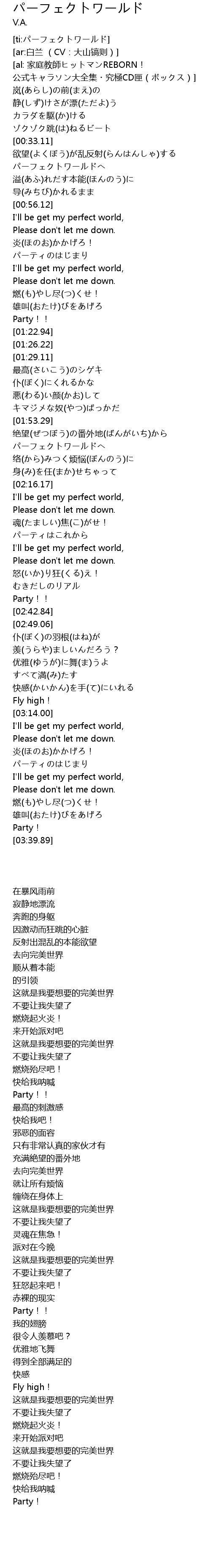 | [02:00.90] | パーフェクトワールドへ |