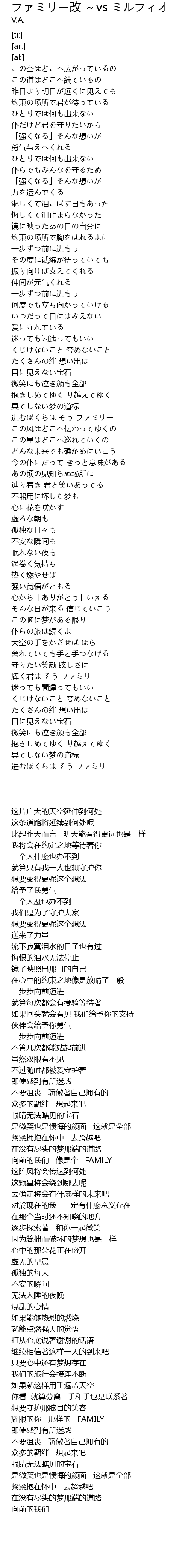 | 歌曲 | ファミリー改 ~vs ミルフィオ |