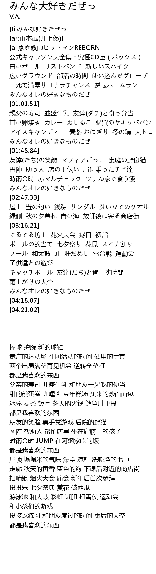 | [04:11.17] | みんなオレの好きなものだぜ |