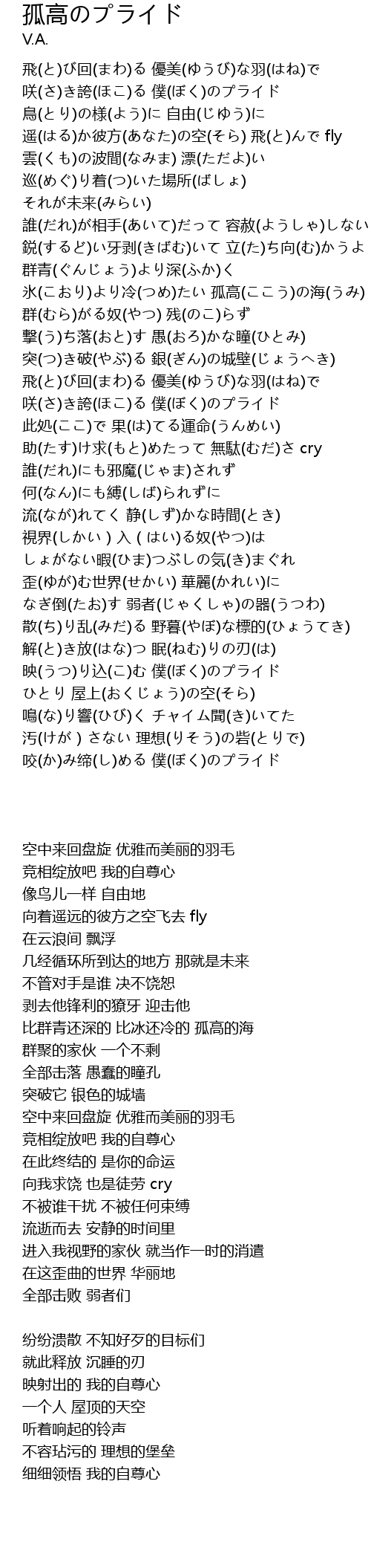| [01:38.85] | 咲(さ)き誇(ほこ)る 僕(ぼく)のプライド |