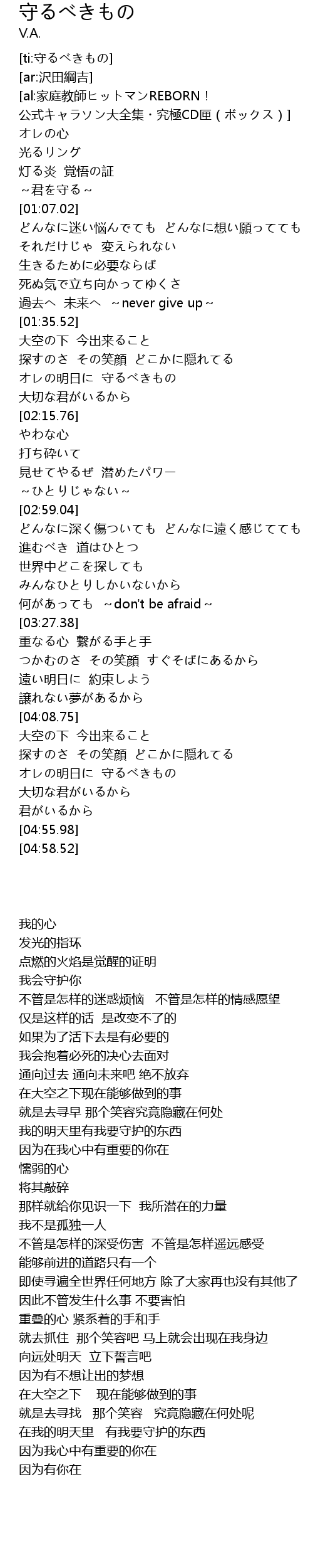 | [04:31.91] | 在我的明天里 有我要守护的东西 |