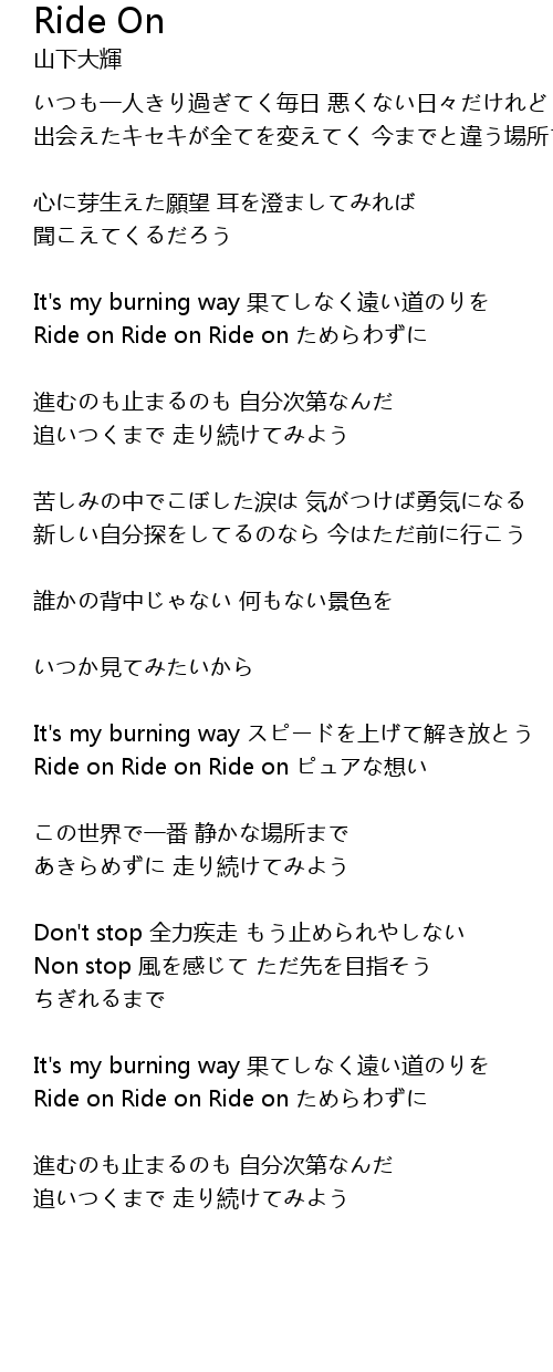 | 新しい自分探をしてるのなら 今はただ前に行こう | |