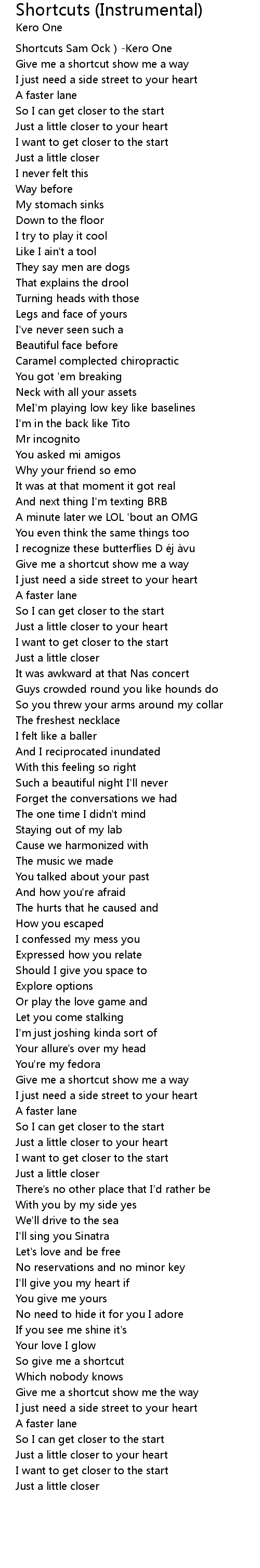 | [00:00.560] | Shortcuts Sam Ock)-Kero One |