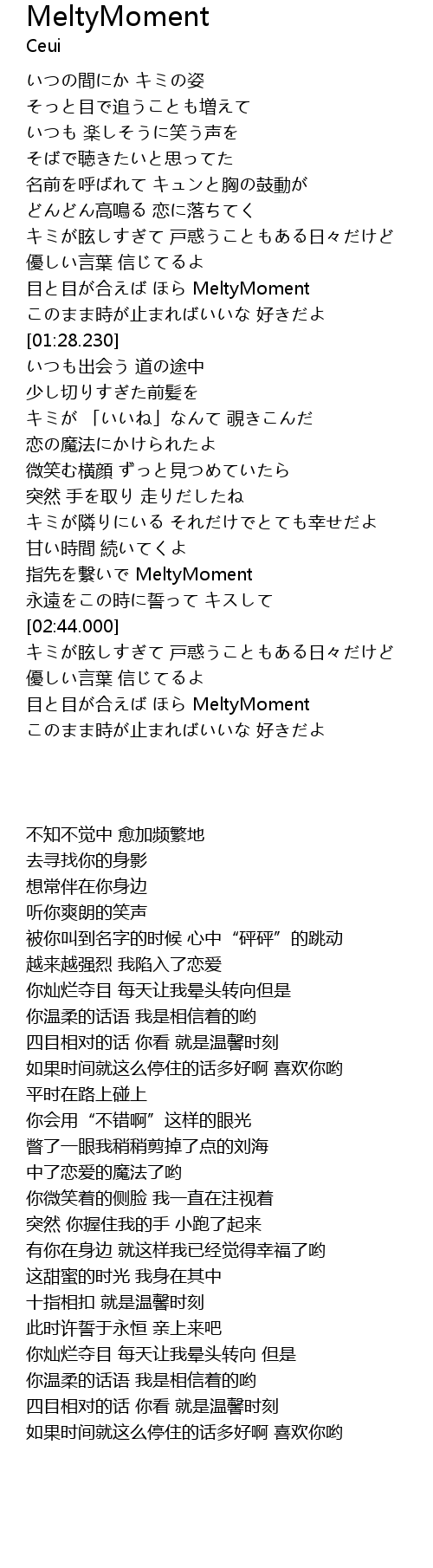 | [01:16.640] | 目と目が合えば ほら MeltyMoment |