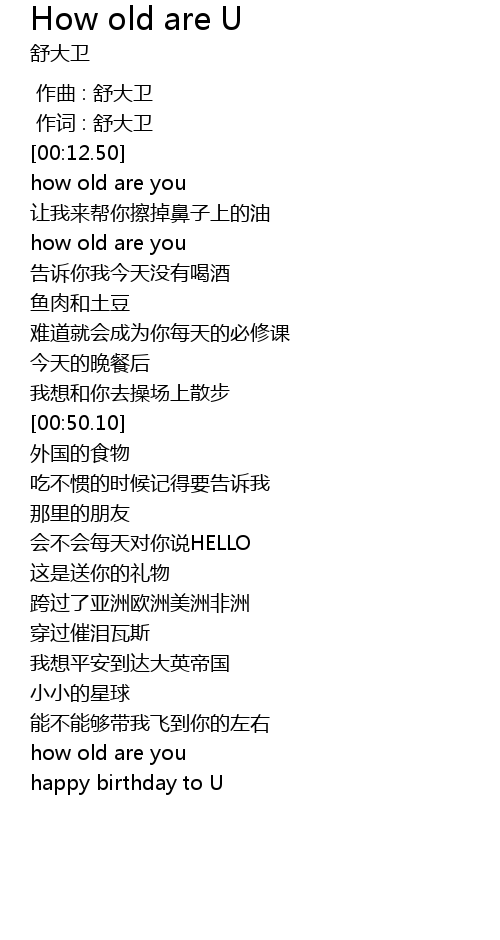 | [00:18.50] | how old are you |
