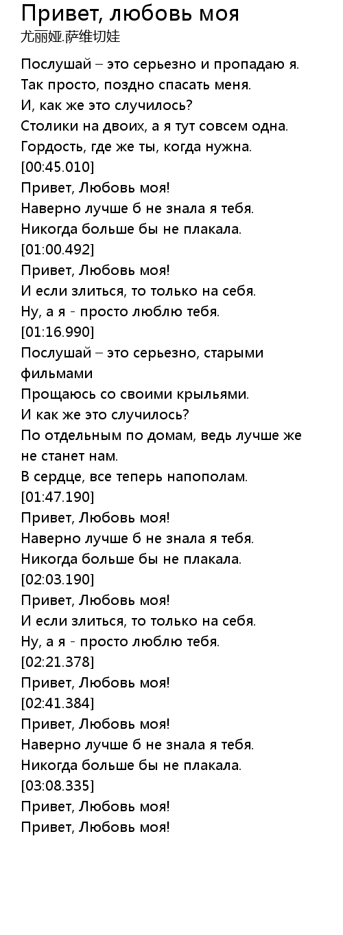 Привет, любовь моя 歌词