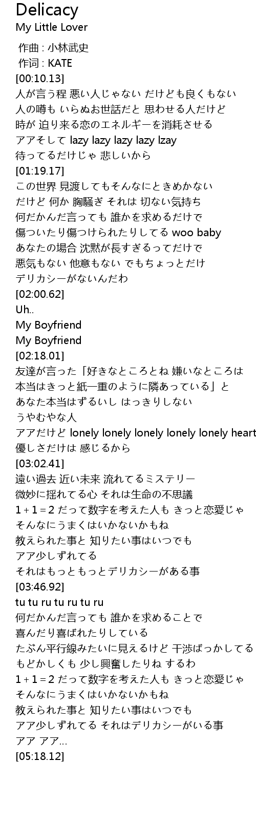 | [04:57.36] | アア少しずれてる それはデリカシーがいる事 |