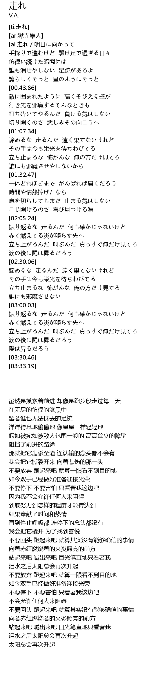 | [03:00.57] | 不要回头 跑起来吧 就算其实没有能够确信的事情 |