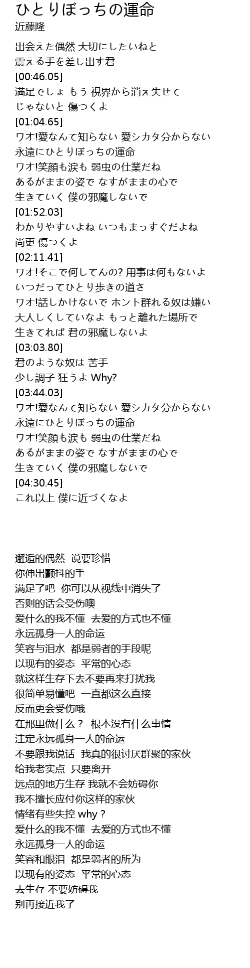 | [03:54.64] | 永遠にひとりぼっちの運命 |
