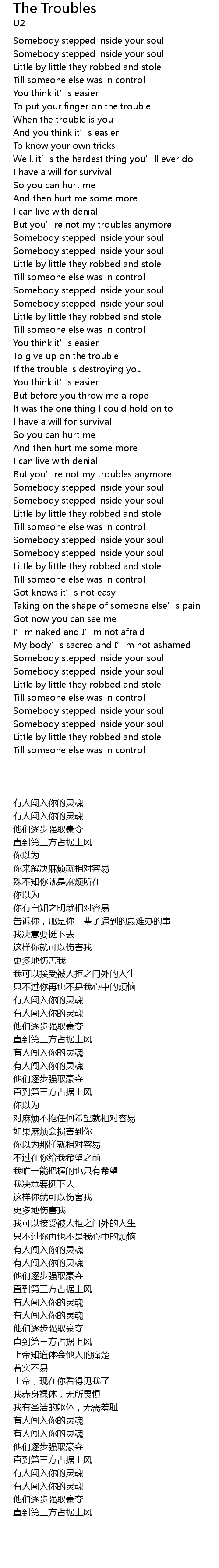 | 歌曲 | The Troubles |