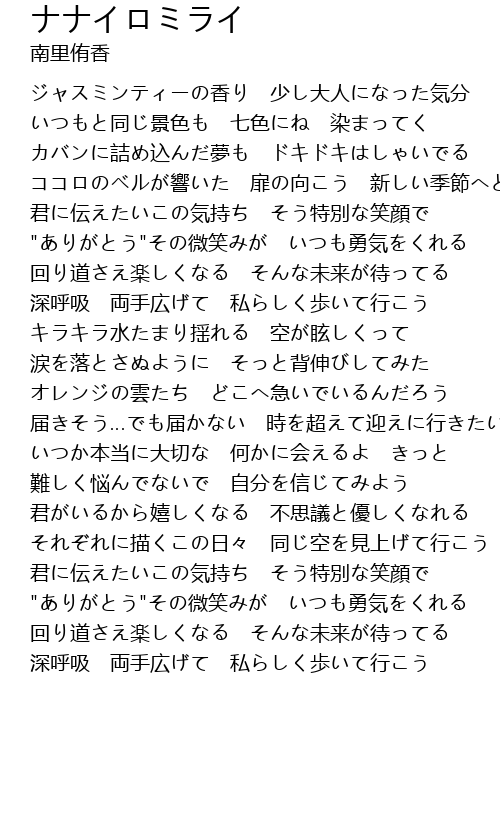 | [03:55.700] | "ありがとう"その微笑みが いつも勇気をくれる |