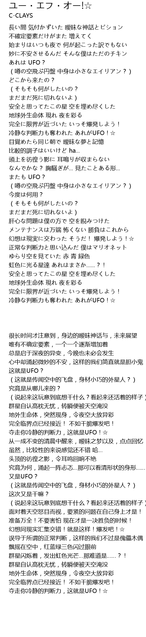 | [01:18.23] | 冷静な判断力も奪われた あれがUFO!☆ |