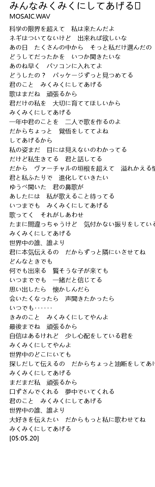 | [04:44.44] | みくみくにしてあげる |