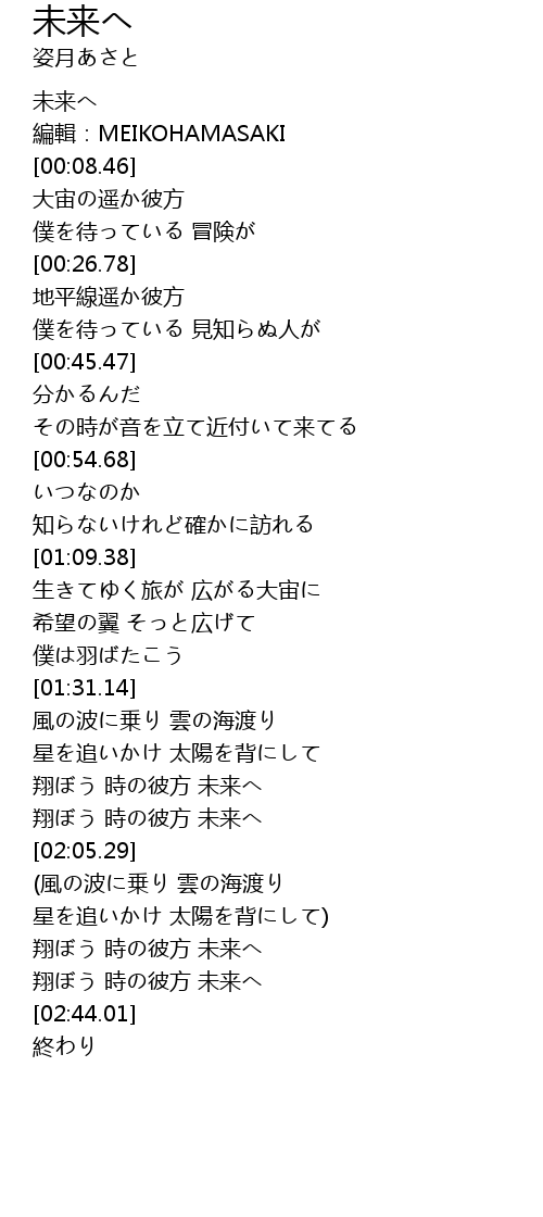 | [00:00.00] | 未来へ |