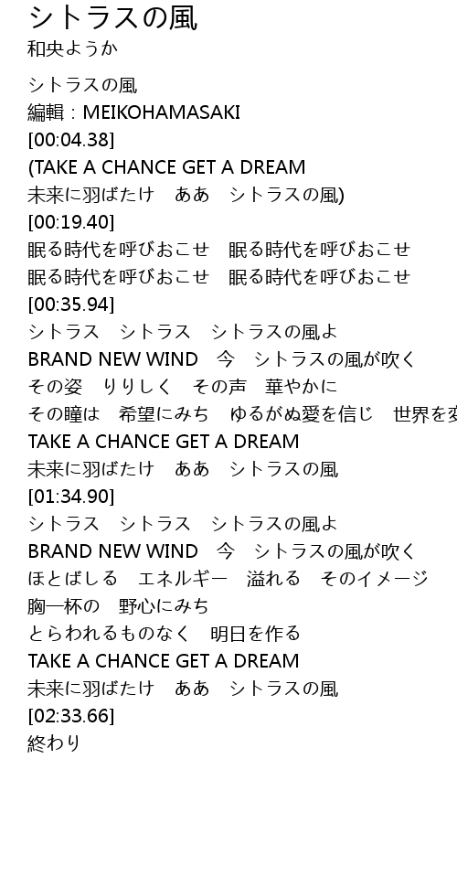 | [00:38.11] | シトラス シトラス シトラスの風よ |