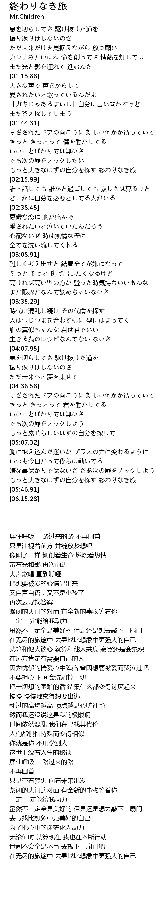 | [02:04.73] | もっと大きなはずの自分を探す 終わりなき旅 |