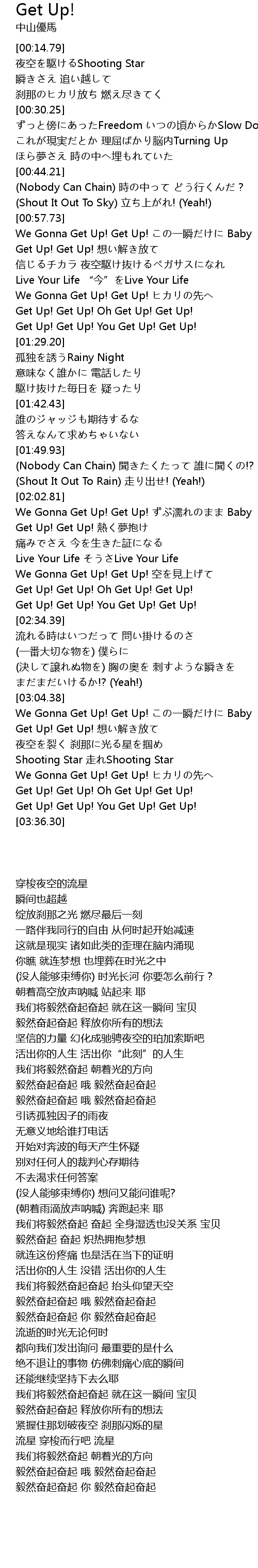 | [03:32.95] | Get Up! Get Up! You Get Up! Get Up! |