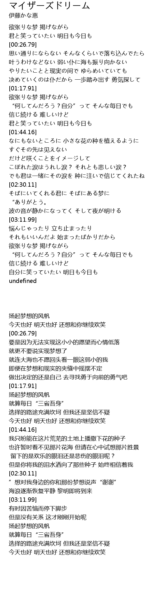 | [03:26.39] | 欲张りな梦 掲げながら |