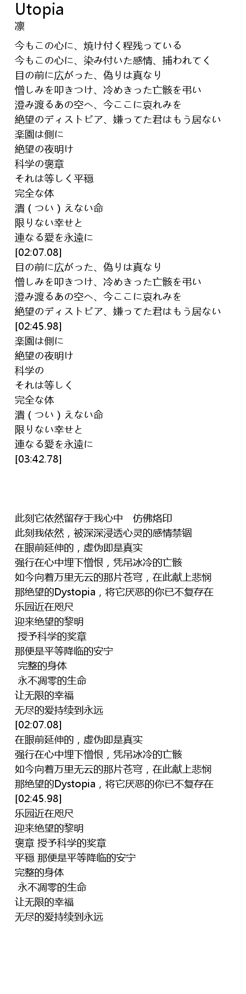 | [02:38.78] | 那绝望的Dystopia,将它厌恶的你已不复存在 |
