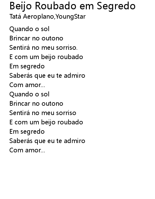 | 歌曲 | Beijo Roubado em Segredo |