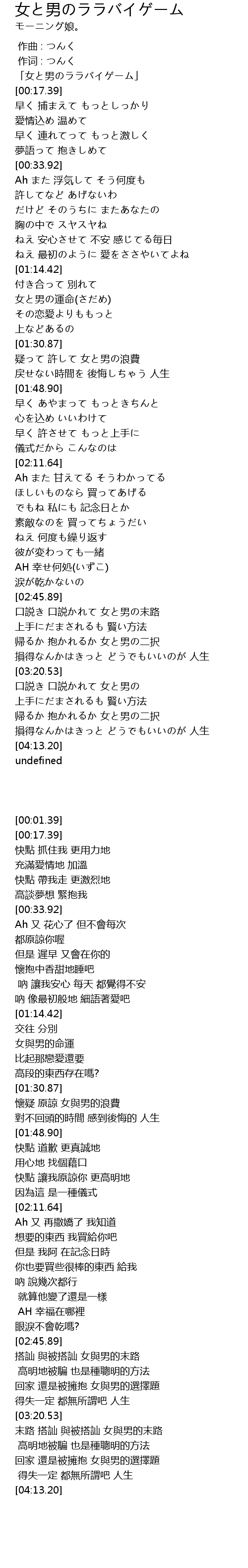 | [00:01.39] | 「女と男のララバイゲーム」 |