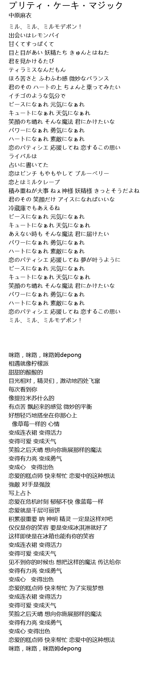 | [00:01.37] | ミル、ミル、ミルモデポン! |