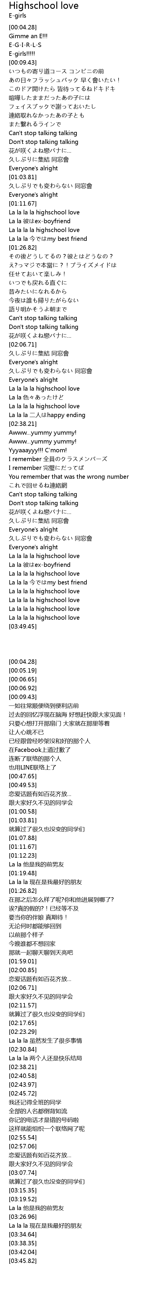| [03:42.04] | La la la la highschool love |