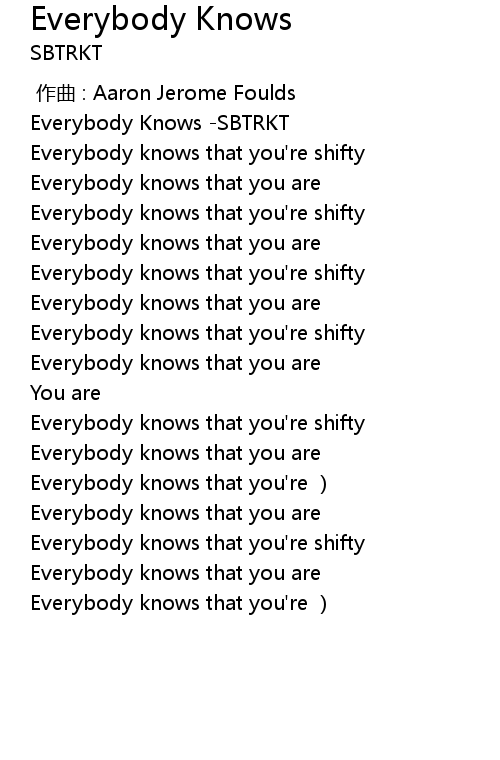 | [01:52.485] | Everybody knows that you're shifty |