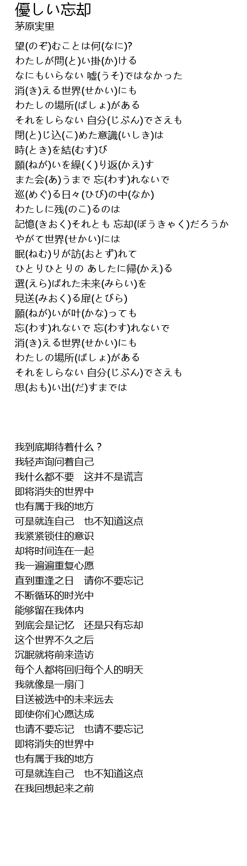 | [02:44.090] | 記憶(きおく)それとも 忘却(ぼうきゃく)だろうか |