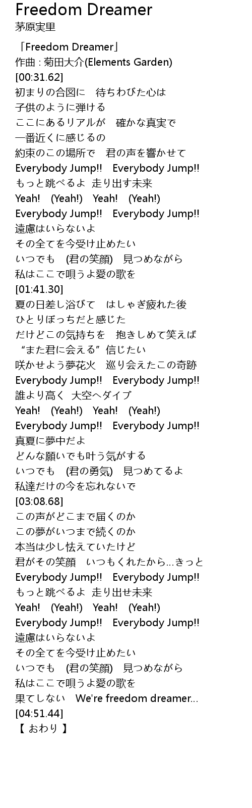 | [04:19.96] | Everybody Jump!! Everybody Jump!! |