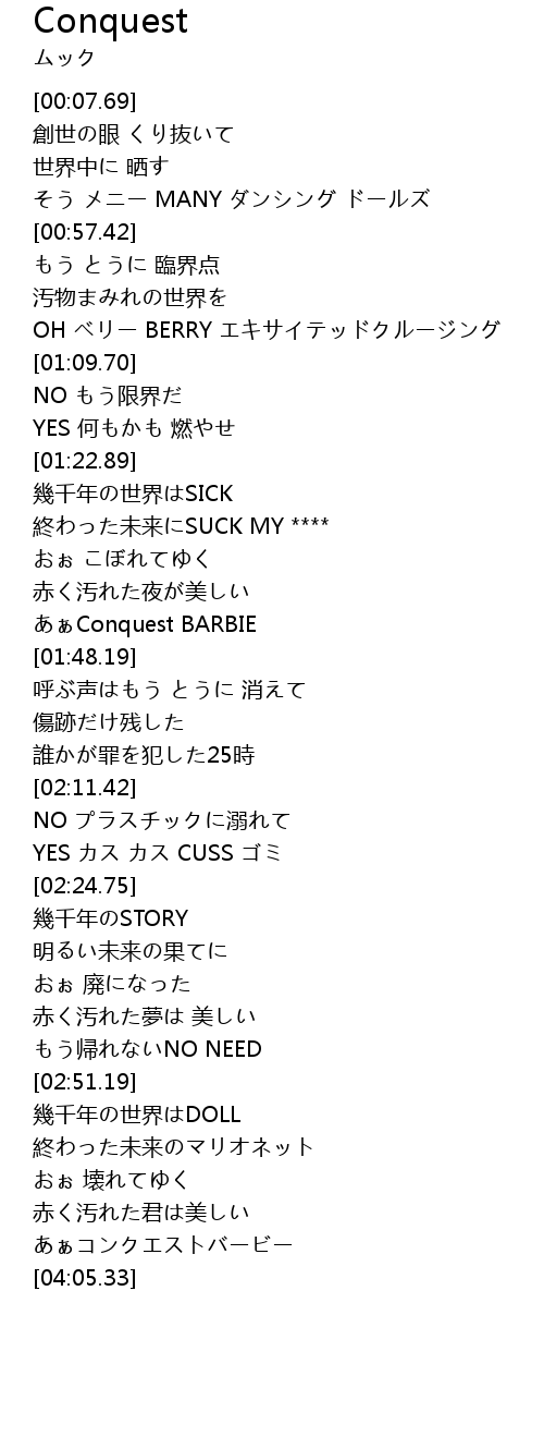 | [01:44.78] | あぁConquest BARBIE |