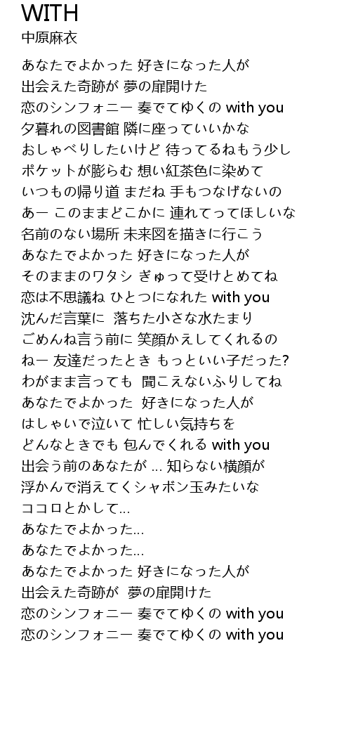 | [02:42.4] | どんなときでも 包んでくれる with you |