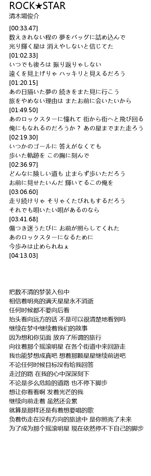 | [04:00.48] | あのロックスターになるために 今歩みは止められねぇ |