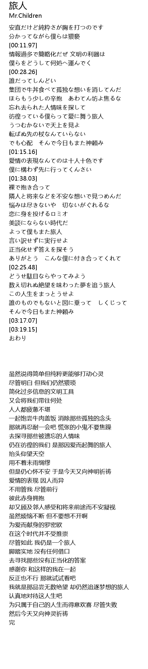 | [00:52.66] | 彷徨っている僕らって愛に舞う旅人 |