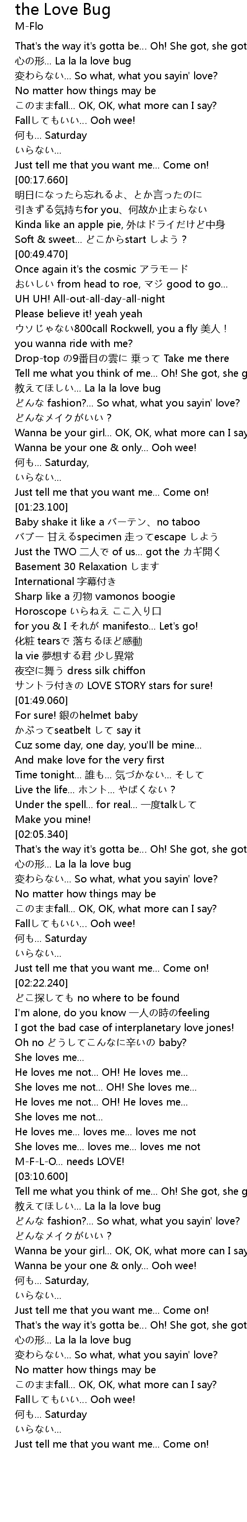 | [01:08.380] | 教えてほしい... La la la love bug |