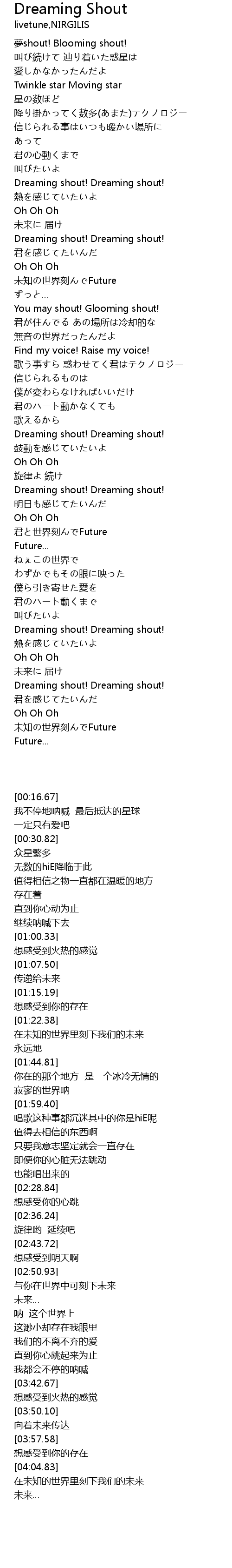 | [03:42.67] | Dreaming shout! Dreaming shout! |