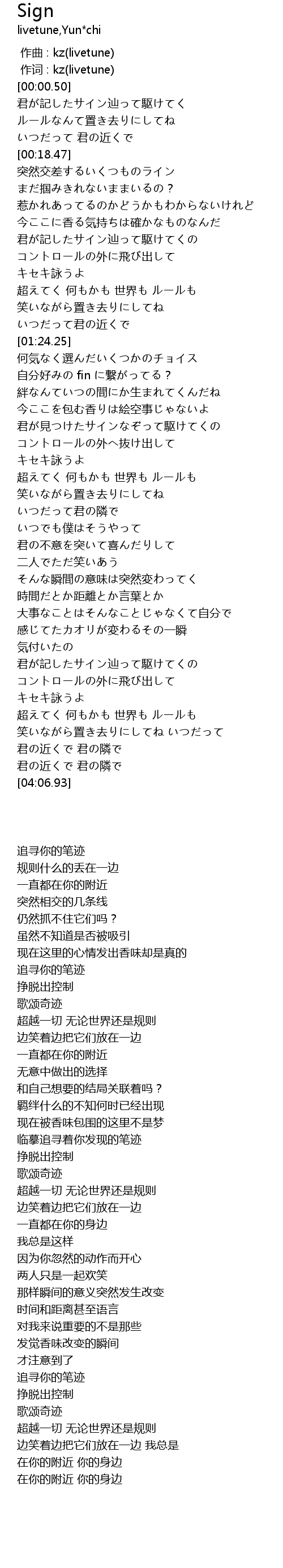 | [00:53.20] | 君が記したサイン辿って駆けてくの |