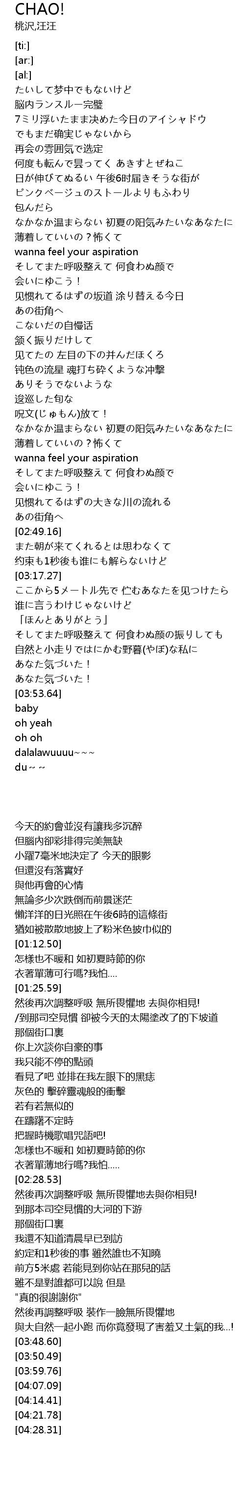 | [00:59.88] | rì shēn wǔ hòu 6 shí jiè jiē |