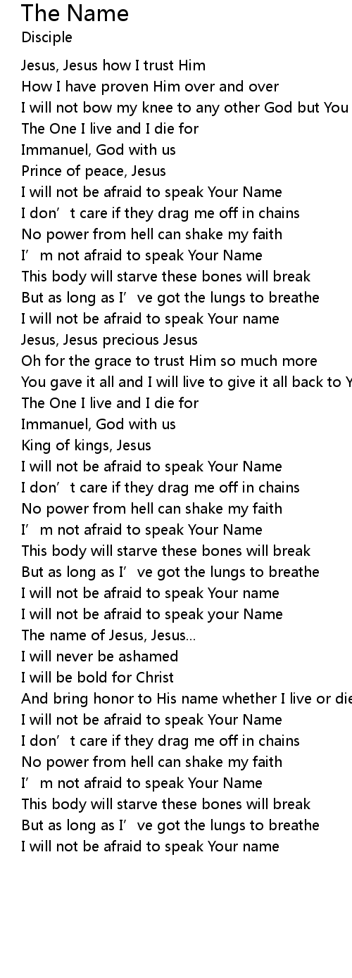 | I will not be afraid to speak Your name | |