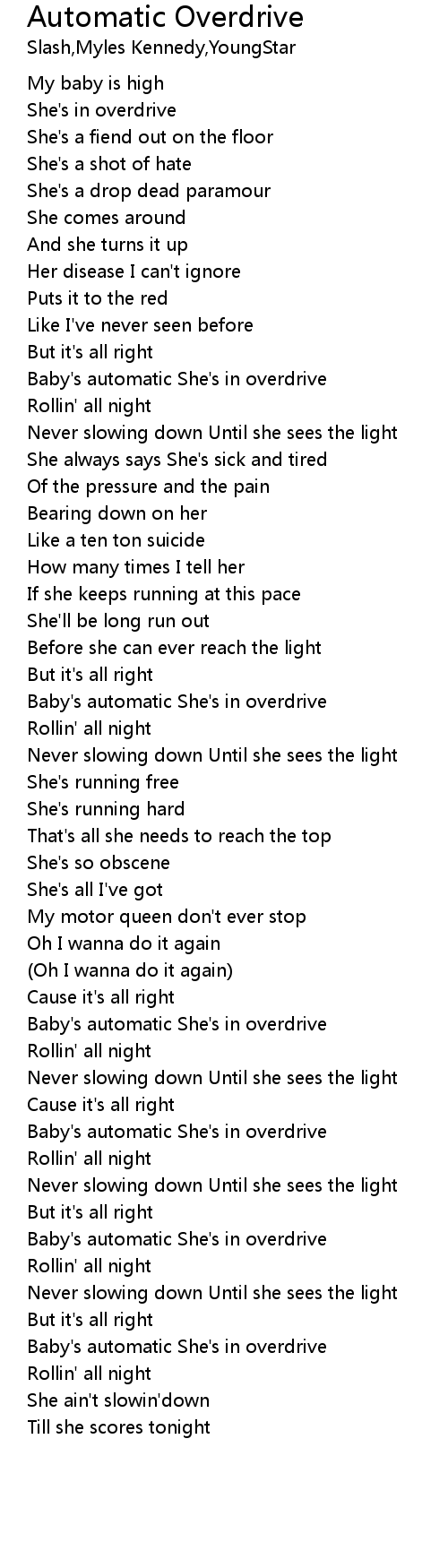 Baby's automatic She's in overdrive |