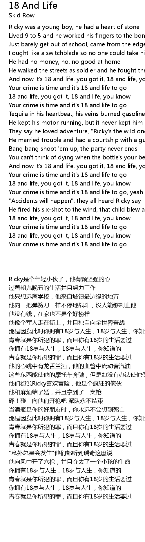 [02:54.99] 18 and life, you got it, 18 and life, you know