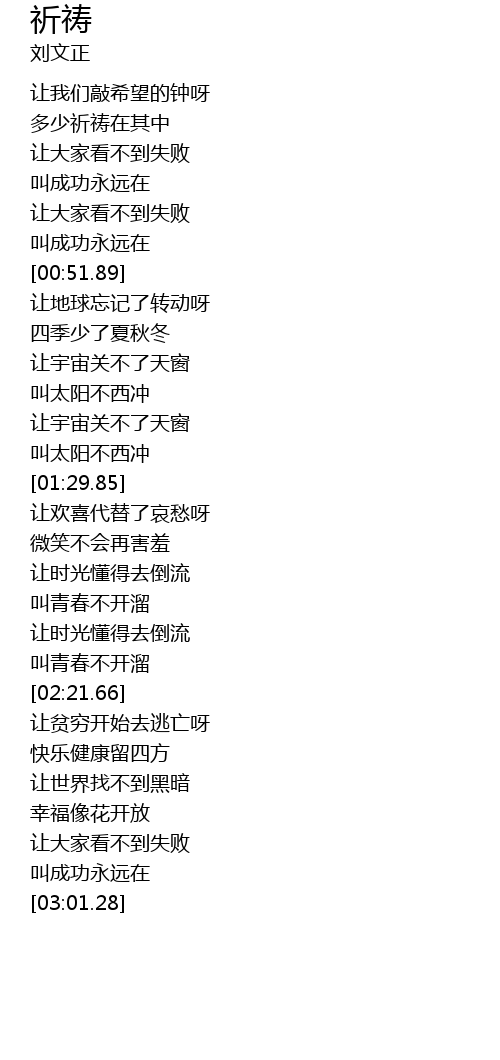 | [00:14.00] | 让我们敲希望的钟呀 |