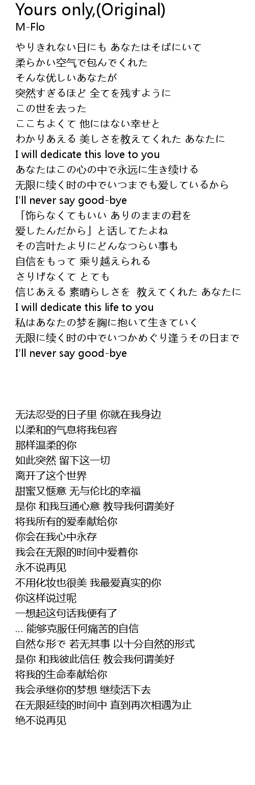 | 歌曲 | Yours only,(Original) |