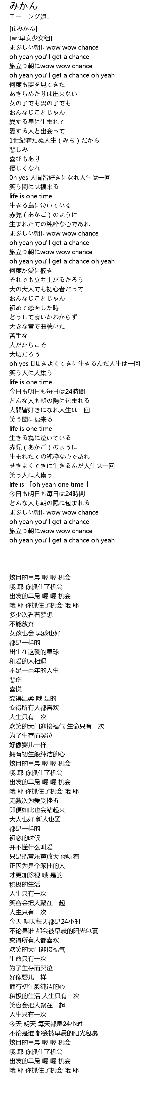 | [01:01.715] | 0h yes 人間皆好きになれ人生は一回 |