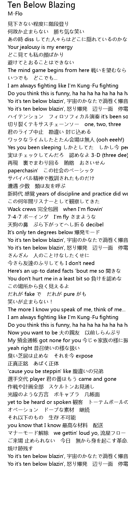 | Yo it' s ten below blazin', nù bào fā biān yī miàn tíng diàn |