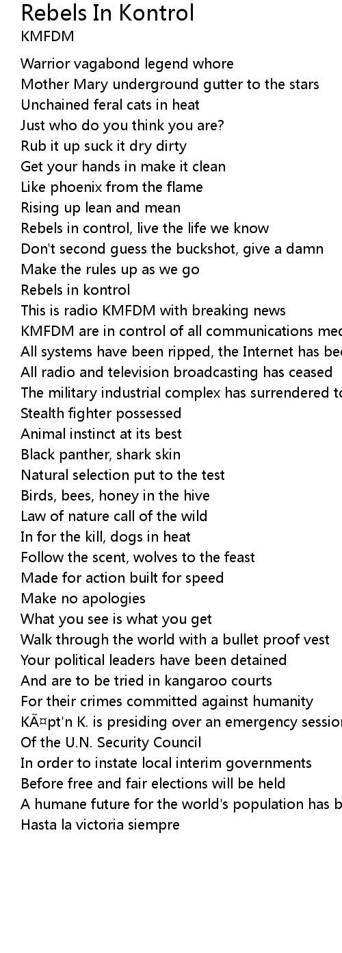 | The military industrial complex has surrendered to KMFDM rebel forces | |