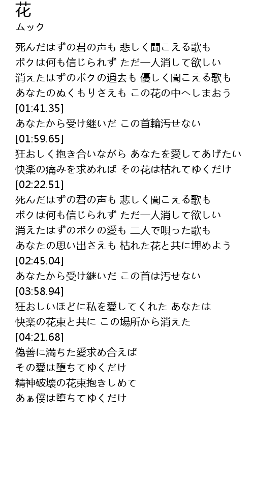 | [04:10.80] | 快楽の花束と共に この場所から消えた |