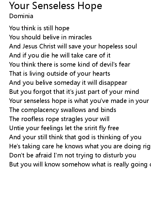 | And Jesus Christ will save your hopeless soul | |