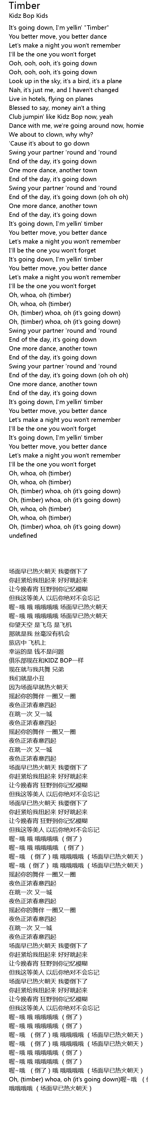 It's going down, I'm yellin' "Timber" |